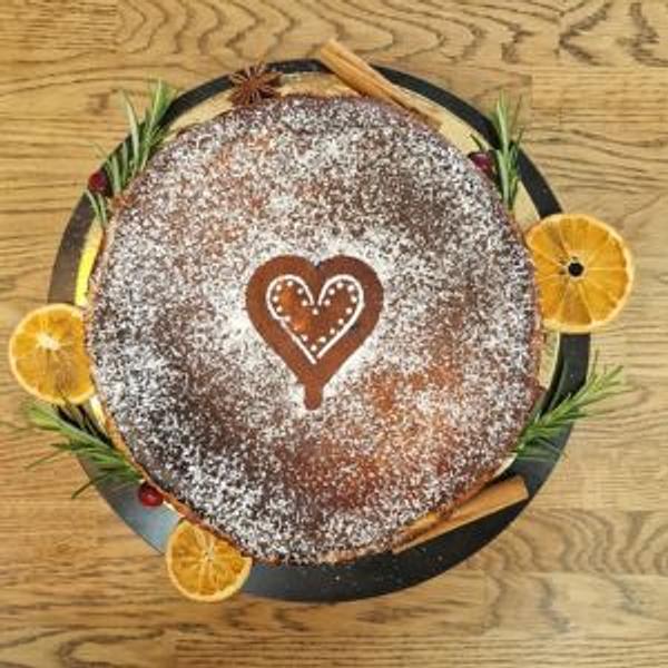 1110 g 🥮 Kremowy, rozpływający się w ustach sernik baskijski z aromatycznymi przyprawami: cynamonem, imbirem i gałką muszkatołową, które dają temu sernikowi piernikowy akcent. Niezwykłe połączenie smakowe. 🥚 Najwyższej jakości składniki: masło, jajka z wolnego wybiegu, śmietanka kremówka. 🎀 Elegancko zapakowany – gotowy na prezent lub wyjątkową chwilę przy kawie. Pokochasz go nie tylko od święta.